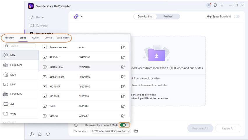 - Конвертировать аудио/видео формат в другие более 1000 видеоформатов, таких как MP4, MOV, AVI и т.д.