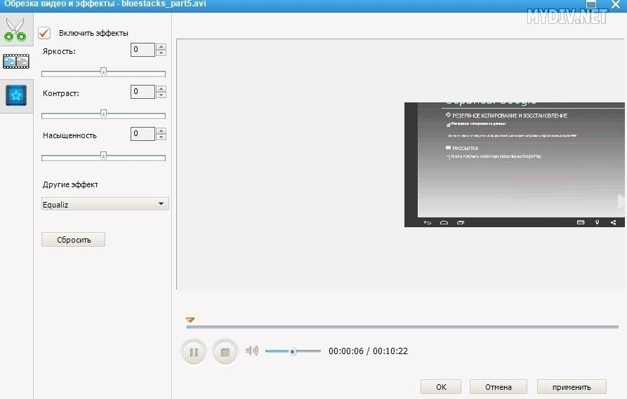 - обрезка видео;