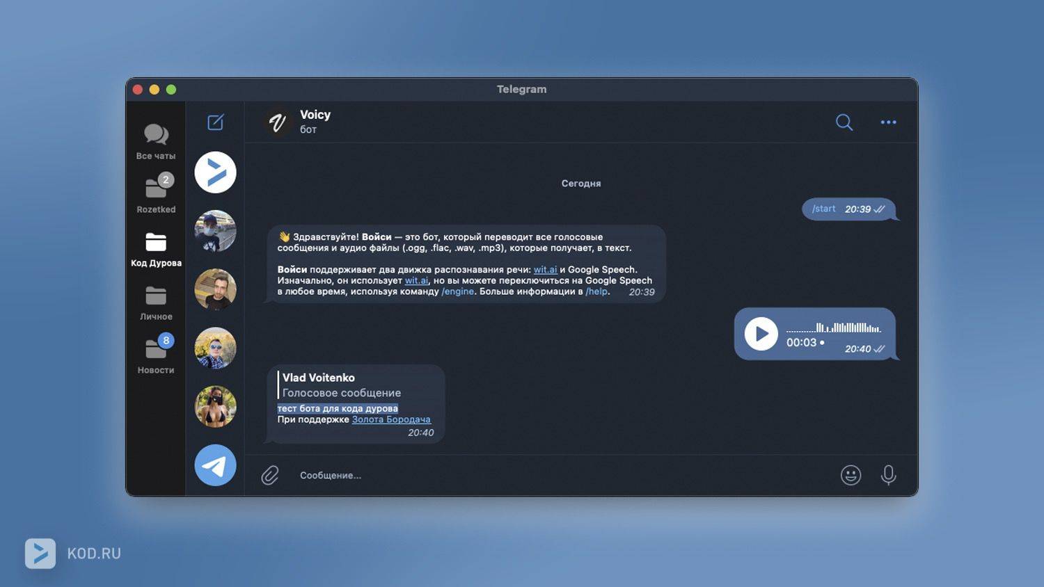 Любите слушать голосовые сообщения? Иногда это не очень удобно, поэтому специально для такой ситуации был придуман бот Voicy. Работает он очень просто: переводит в текст все голосовые сообщения, а также аудиофайлы форматов .ogg, .flac, .wav, .mp3.