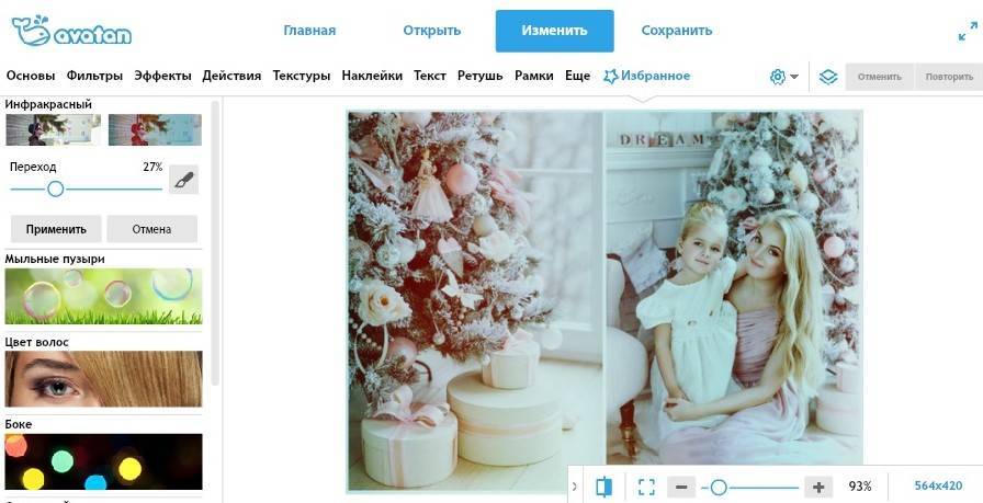 Использование фоторедактора Avatan.