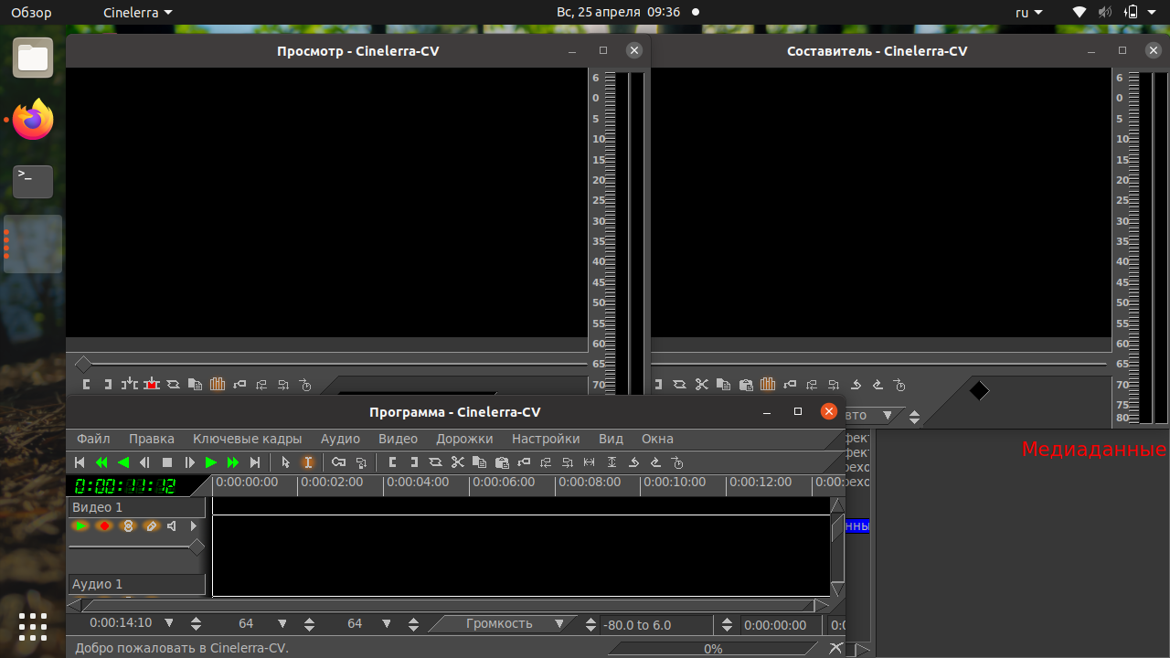 Положение окон просмотра, вывода и ресурсов можно перемещать и масштабировать, что, с одной стороны, позволяет настроить интерфейс под себя, а с другой — может быть не очень удобно для новых пользователей. Чтобы установить Cinelerra, вначале добавьте репозитории разработчика и обновите список пакетов: