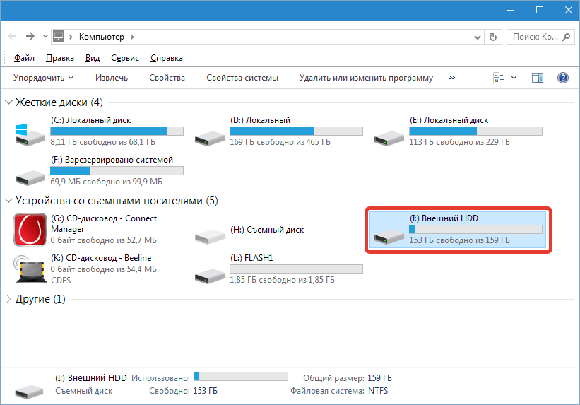 Здесь все достаточно просто. Если внешний диск является единственным съемным носителем в системе, то проблем нет. Если же носителей несколько, то руководствоваться придется размером диска или записанной на него информацией.
