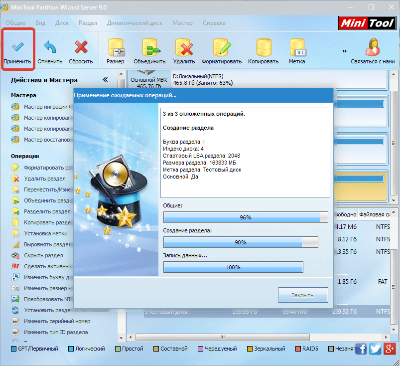 3. Далее нажимаем «Применить» и ждём окончания процесса.