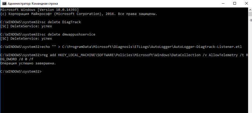 reg add HKEY_LOCAL_MACHINESOFTWAREPoliciesMicrosoftWindowsDataCollection /v AllowTelemetry /t REG_DWORD /d 0 /f