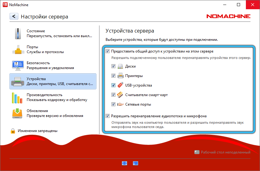 Использование удалённого рабочего стола — крайне удобная и полезная опция. Благодаря понятному интерфейсу Nx Nomachine, настроить имеющиеся устройства на дистанционное управление достаточно просто. В результате пользователь получает полный доступ ко всем возможностям сопряжённого аппарата, включая прослушивание музыки, просмотр видео, редактирование каких-либо файлов и даже работу с периферийным оборудованием, например, с принтером.