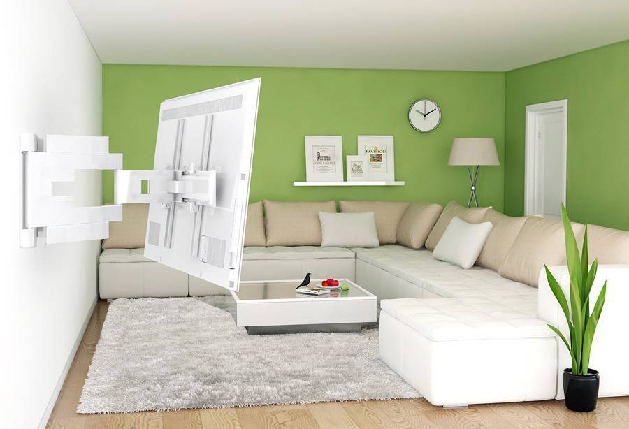 Определившись с местом, необходимо выбрать правильное расстояние от пола, на котором будет висеть телевизор.