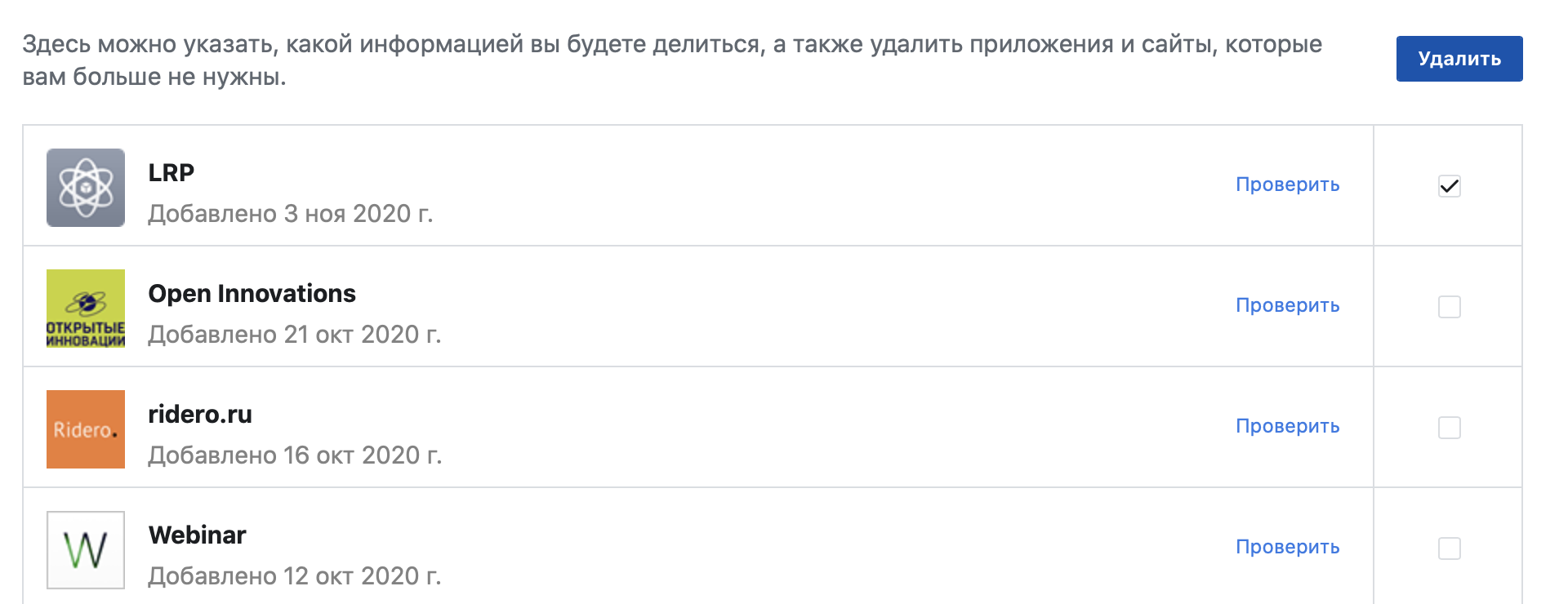 «Ваши настройки данных на Facebook» → «Приложения и сайты» → далее аналогично.