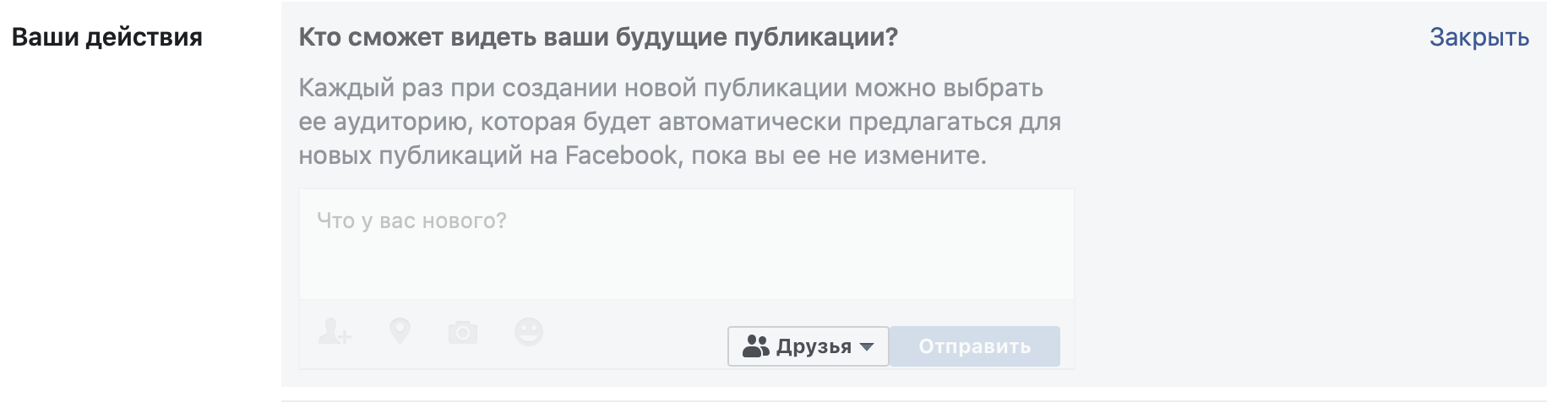 «Настройки и конфиденциальность» → «Быстрые настройки конфиденциальности» → «Дополнительный настройки конфиденциальности» → «Ваши действия» → «Кто сможет видеть ваши будущие публикации?» → «Изменить» → выберите «Только друзья». Там же можно выбрать «Ограничить доступ к старым публикациям» для друзей.