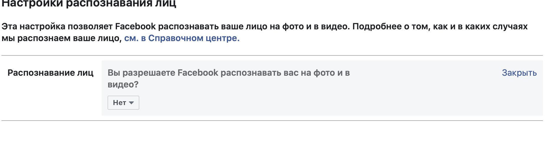 2. Выключите распознавание лиц.