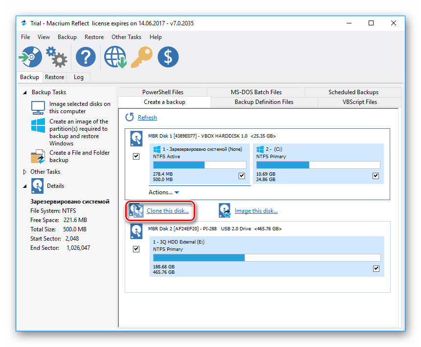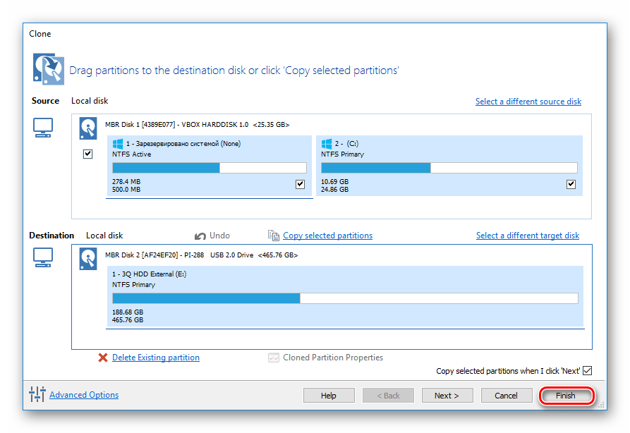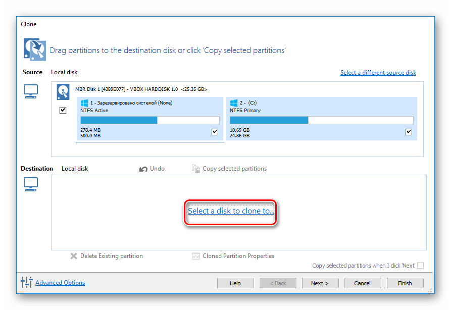 Чтобы провести клонирование при помощи этой программы, выполните следующее: