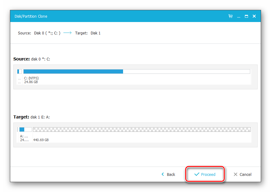 На следующем этапе нужно проверить правильность выбранных дисков и подтвердить свой выбор, нажав на кнопку «Proceed».