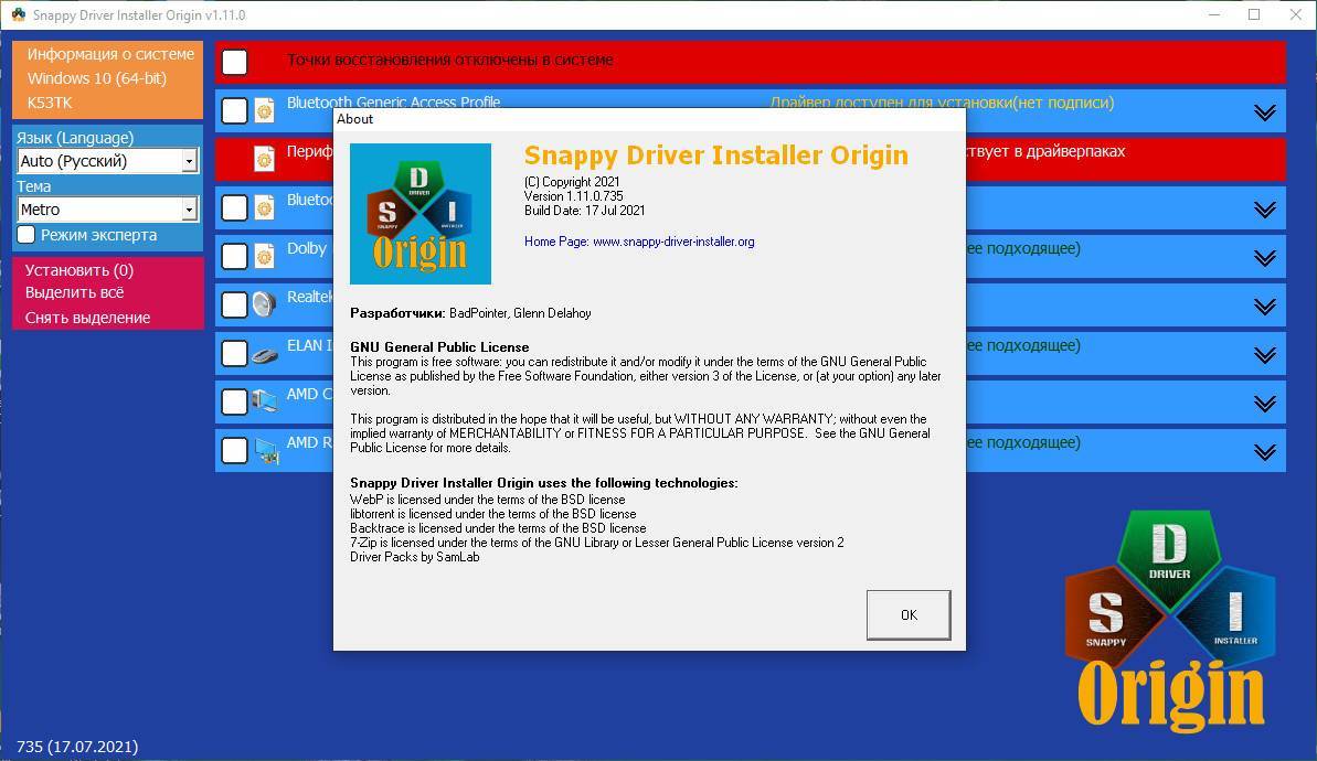 Что там не поделили Артур с BadPointer’ом — история умалчивает, но последний ушёл из команды (так часто бывает) и создал с нуля Snappy Driver Installer, учтя и исправив все ошибки с недоработками DSP.