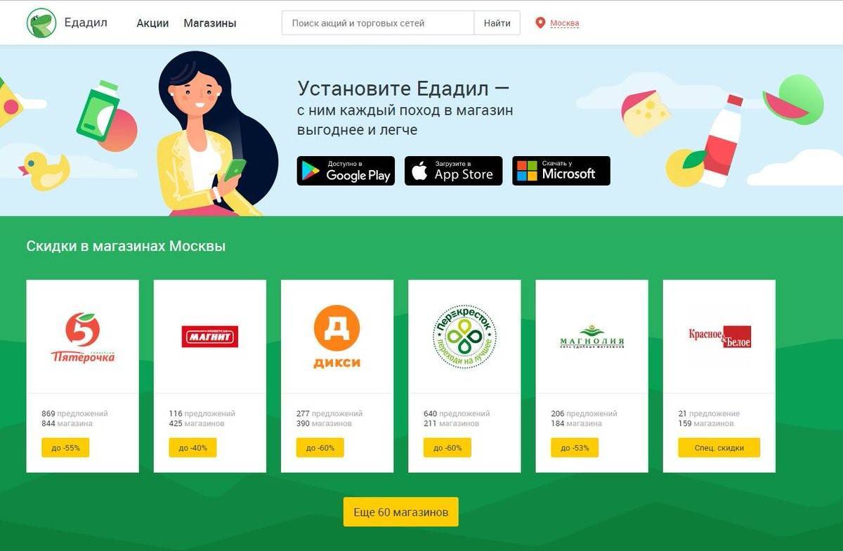 Едадил – кэшбэк сервис, один из крупнейших в России. Ежедневно система собирает информацию о различных акциях и скидках от магазинов-участников программы. Она сразу же становится доступна всем пользователям сервисов.