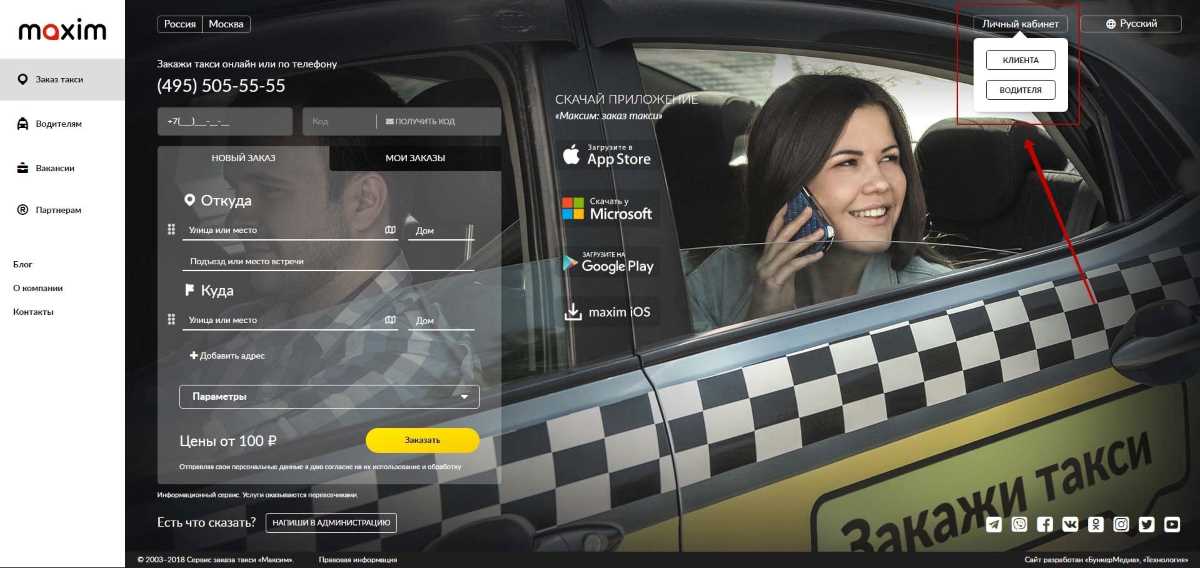 Сайт сервиса такси «Максим» https://taximaxim.ru