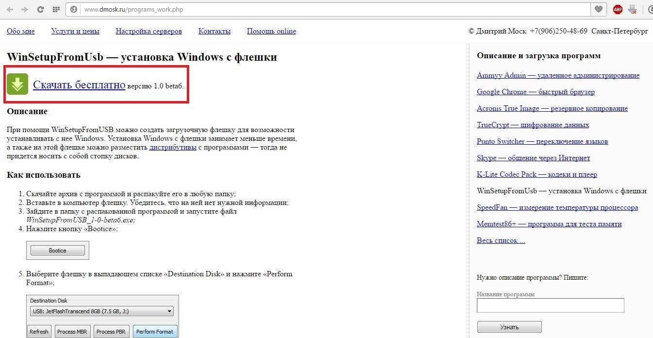 Кстати, скачивать следует именно с сайта winsetupfromusb.com. Скачать его оттуда довольно просто. Для этого нужно сделать следующее: