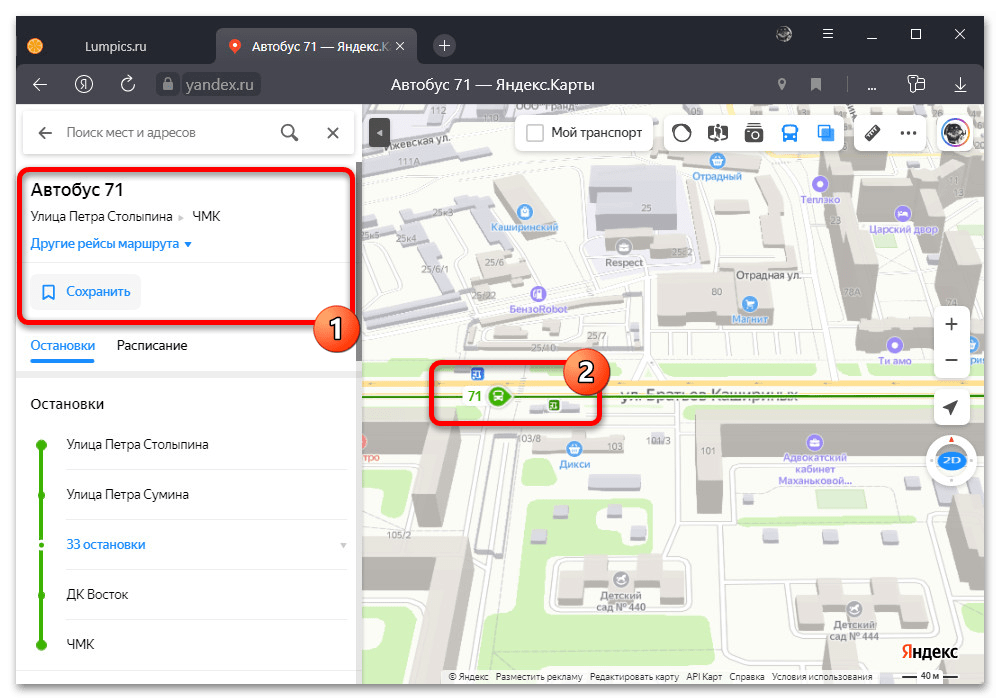 Для более быстрого поиска определенного транспортного средства на карте, как и в предыдущем случае, можно заранее выбрать маршрут нужного рейса и даже добавить в закладки. За счет этого в некоторых случаях получится увидеть даже приостановленные варианты.