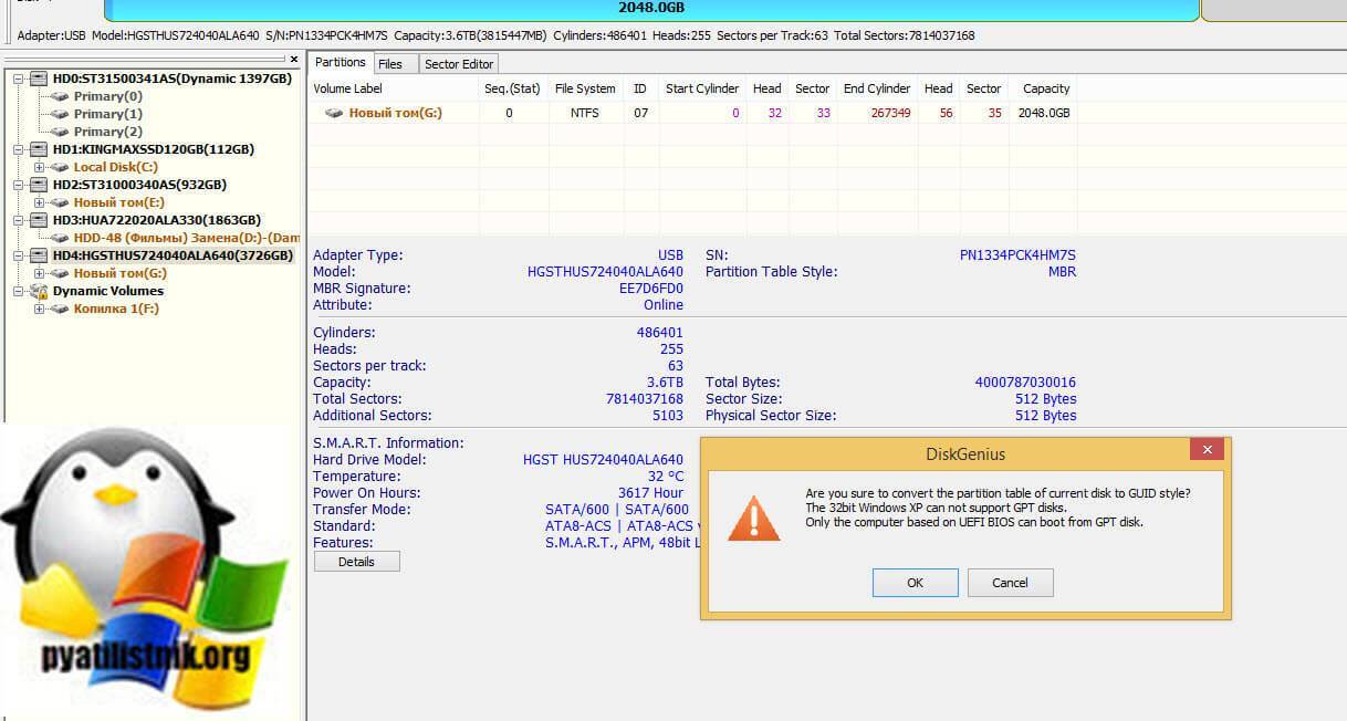 Как перевести диск в gpt с помощью DiskGenius (без потери данных)