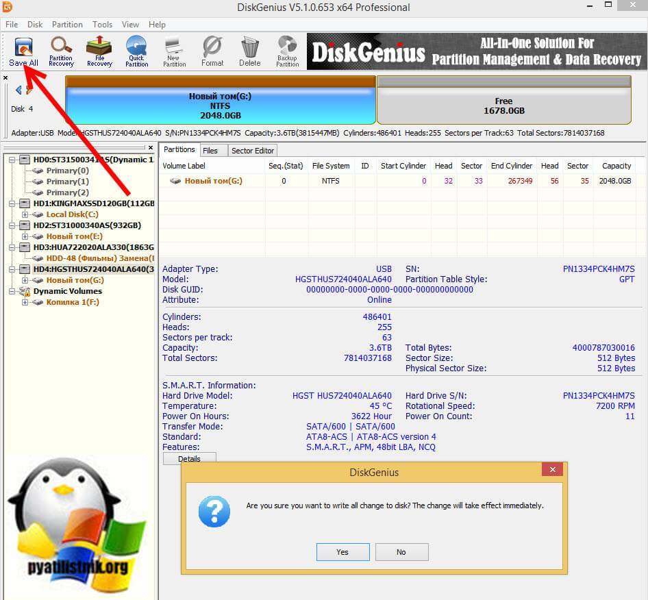Далее необходимо применить наши изменения, и тогда точно можно говорить, что преобразование диска mbr в gpt будет выполнено. Для этого в верхнем левом углу есть кнопка “Save All”. Соглашаемся с изменениями.