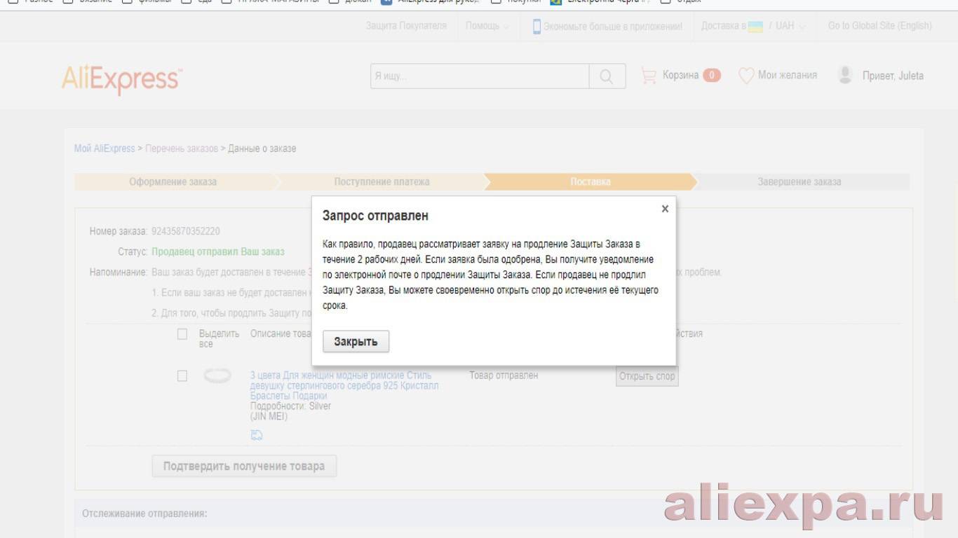 В течение некоторого времени, порядка 1-2 дней, продавец одобряет вашу заявку, продлевая тем самым защиту. в этом случае, в аккаунт приходит сообщение-уведомление, которое сложно пропустить. Если вы не получаете такого письма, то это означает, что продавец отклонил ваше заявление о продлении защиты. Это именно тот вариант, при котором стоит открыть спор и отстоять свои права.