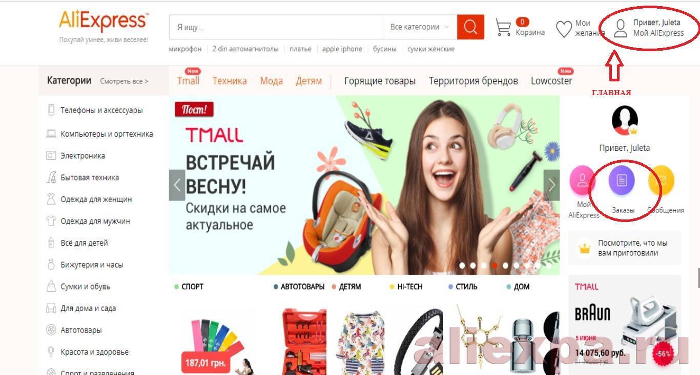 На главной странице нажимаем на заказы. Следите, чтобы Вы были авторизованы в системе (вошли под своим логином и паролем).