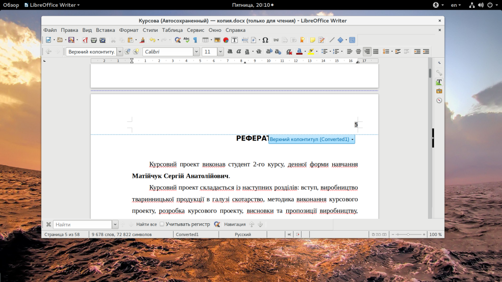 Вот так просто выполняется нумерация страниц в libreoffice writer. Да, это сложнее, чем в Microsoft Office, но благодаря тому, что номер страницы — это отдельное поле, вы можете вставить его в нужное место текста. Если вам нужно вставить номер внизу страницы, то действия будут аналогичными, только нужно открывать не верхний колонтитул, а нижний и делать все там. Колонтитул повторяется на каждой странице, поэтому нумерация libreoffice будет ставиться автоматически.