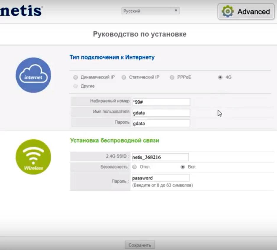 Более детальные настройки вы в дальнейшем сможете сделать с помощью кнопки Advanced, раздела «Сеть» и подразделов «Режим доступа» и 3G / 4G.