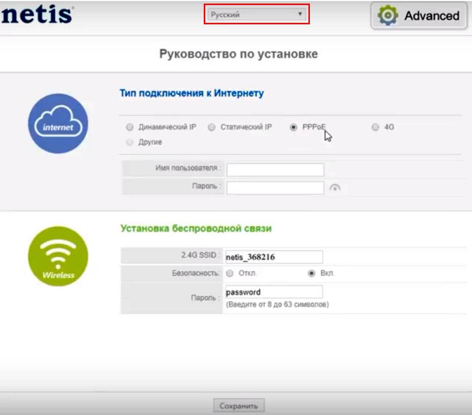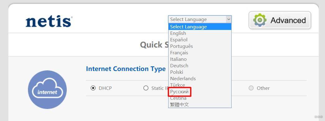 В случае открывания панели на иностранном языке, выберите вверху в списке нужный вам язык. В разделе «Тип подключения к Интернету» выберите тот тип, который указал ваш провайдер. Если вы его не знаете, попробуйте «Динамический IP» или придется связываться с провайдером. Дело в том, что только для динамического IP не требуется вводить никакой информации, для остальных типов задаются конкретные данные (они указываются в вашем договоре с провайдером). Так, в случае статического IP это маска подсети, шлюз, IP-адрес WAN и другие данные, при РРРоЕ это имя пользователя и пароль. Если вы эти данные не введете или введете неверно, у вас появится интернет с ограничением доступа (то есть фактически его не будет).