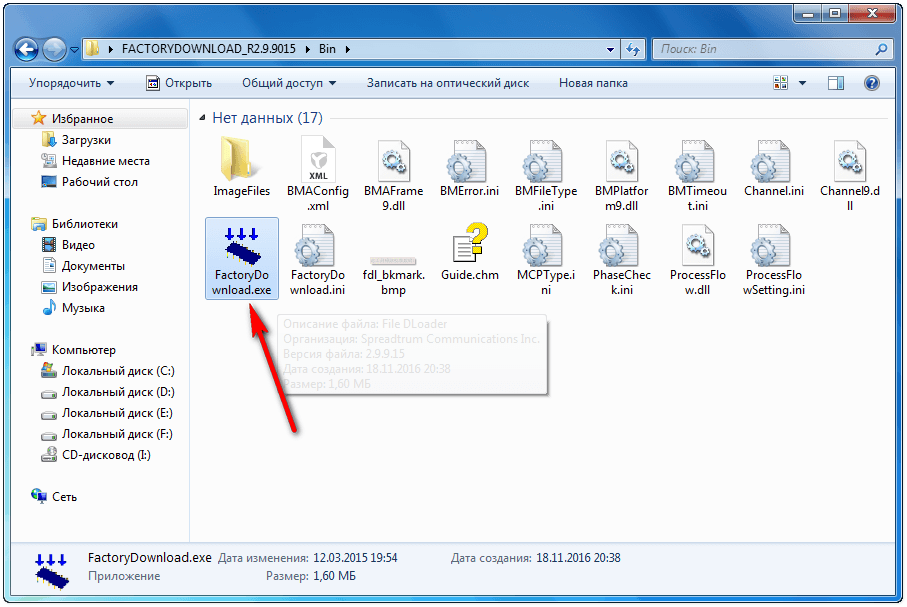 Теперь приступим непосредственно к прошивке аппарата. Запустите программу для прошивки FACTORY DOWNLOAD.