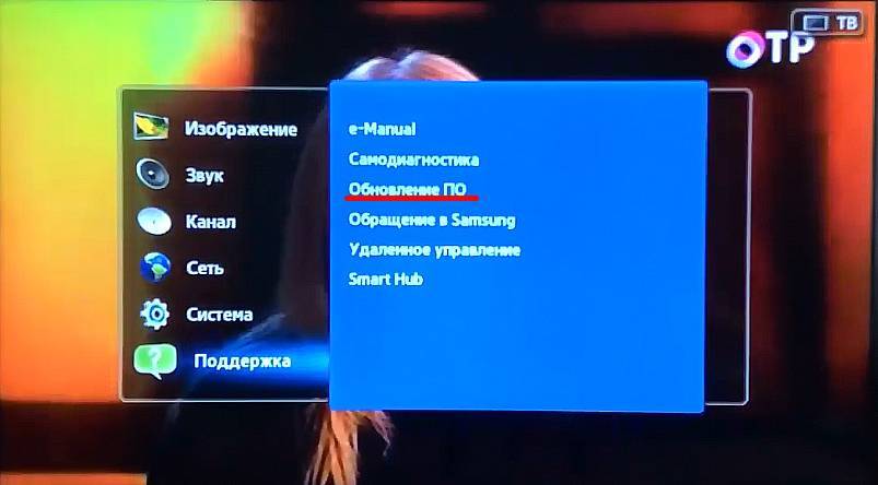 Чтобы обновить телевизор Самсунг Смарт ТВ через интернет, следует выбрать в меню настроек: