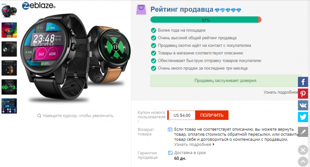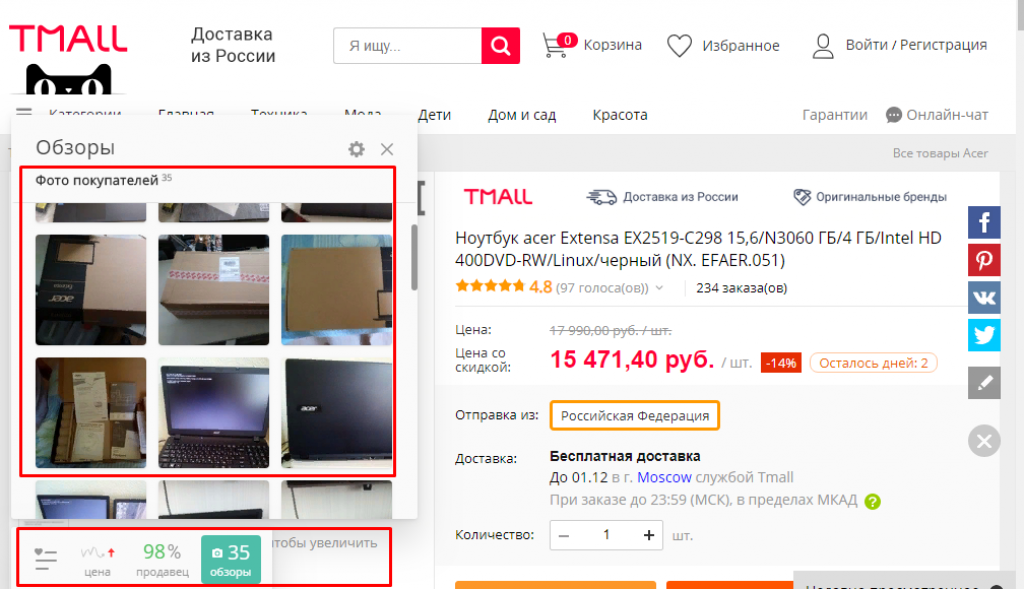 - Обязательно смотрите на рейтинг продавца – если он ниже 4,5 единиц, то это тревожный знак и стоит обязательно прочитать как можно больше отзывов других покупателей.