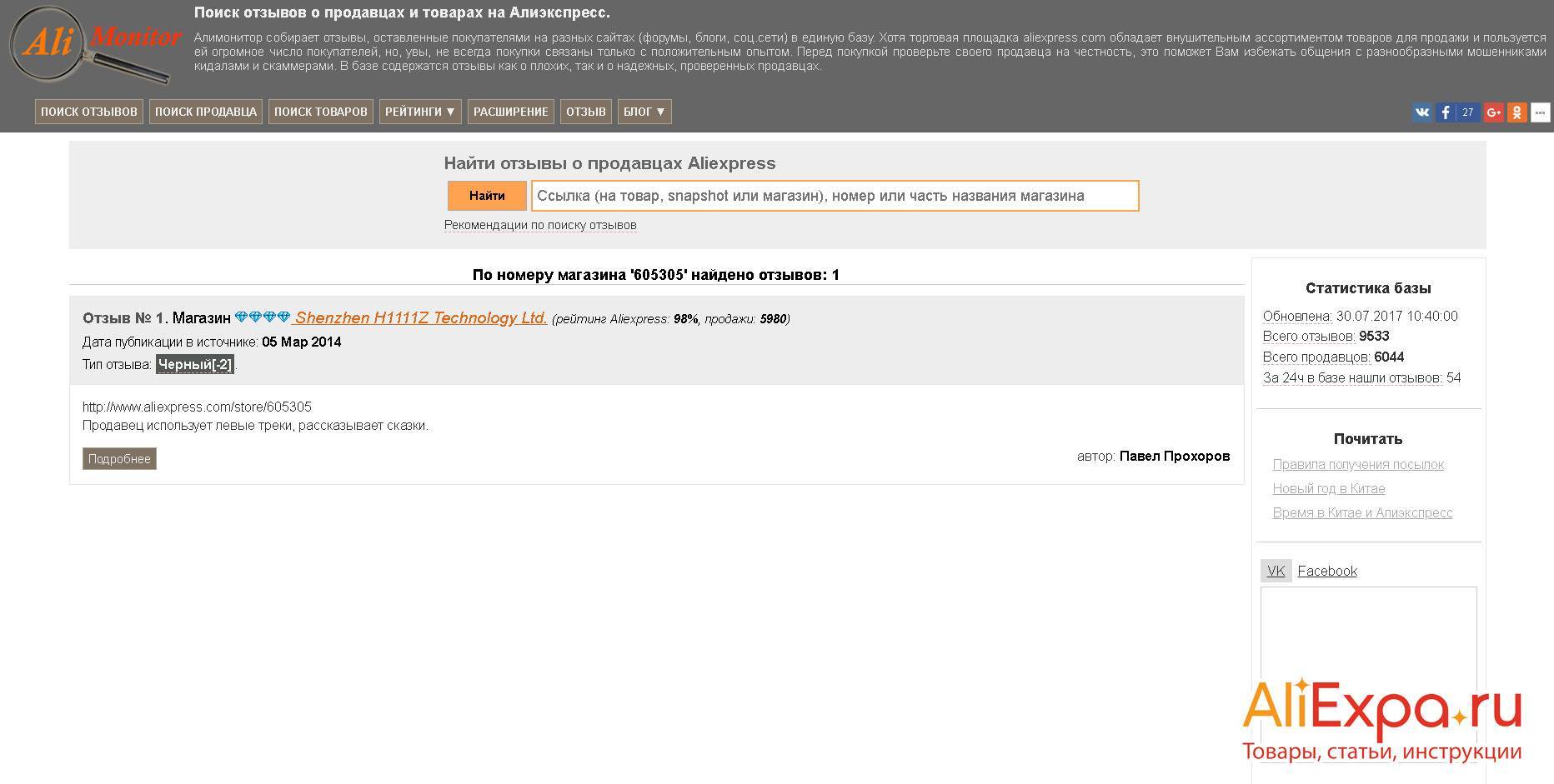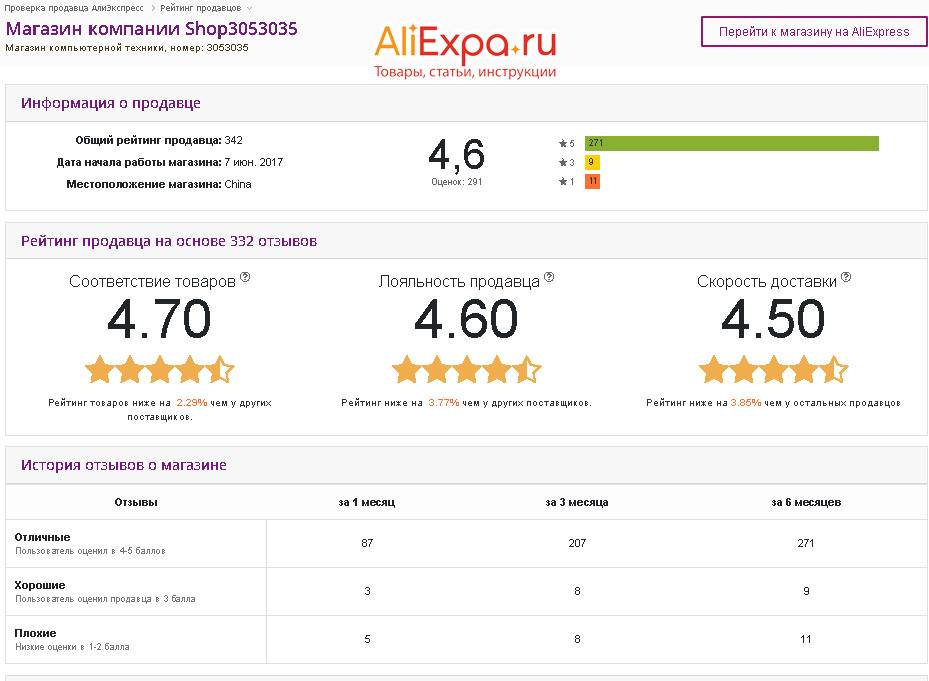 На сайте http://www.alimonitor.ru информация о найденном магазине выглядит таким образом: