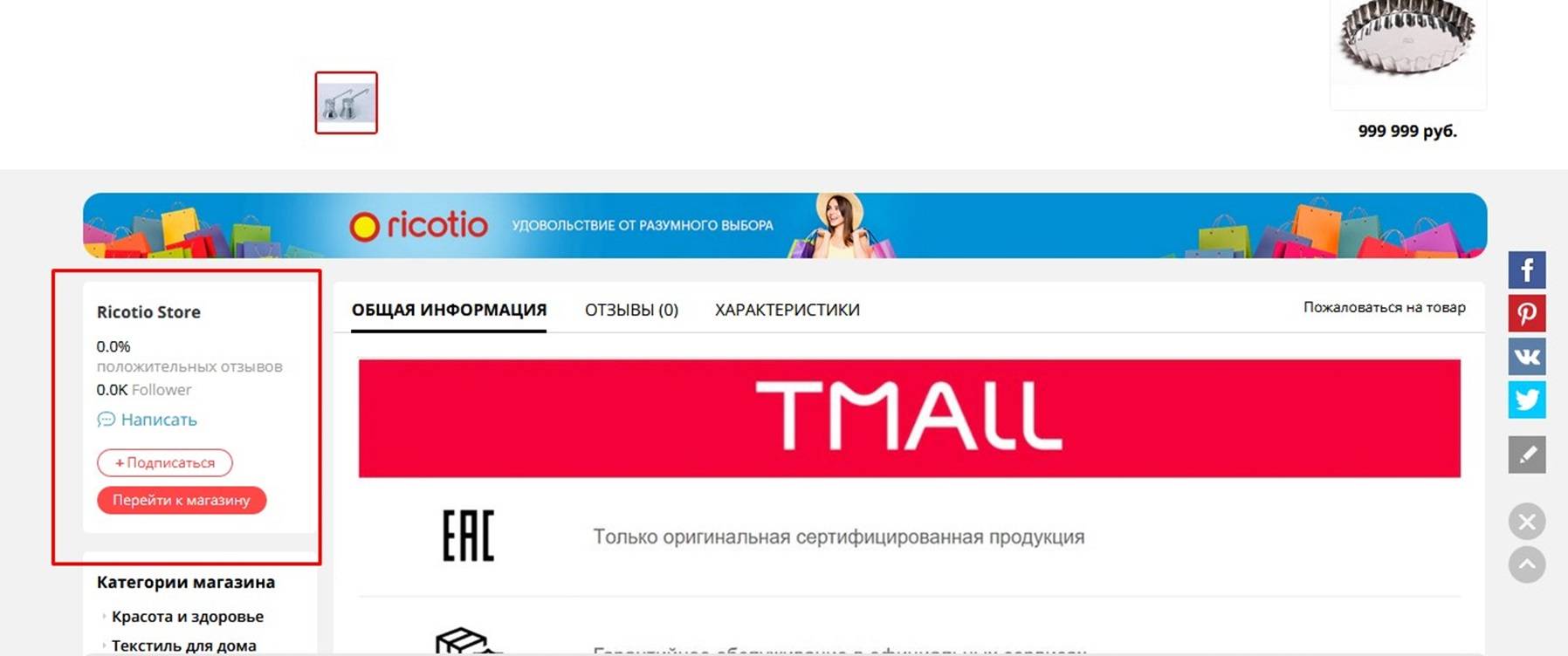 Пролистнуть страничку немного вниз. Именно под фотографией с нужным товаром располагается название магазина, некоторые сведения о нем.