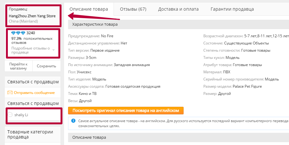 - Название магазина (Seller), например, HangZhou Zhen Yang Store;