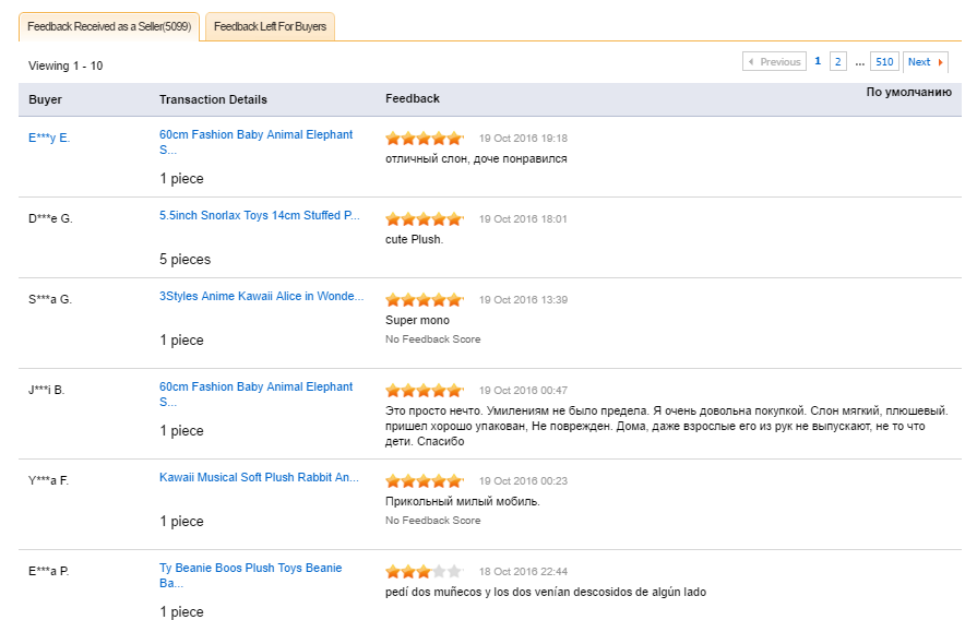 Feedback History — отображает отзывы от покупателей, которые совершали покупки в этом магазине. Причем на странице магазина вы найдете общий зачет откликов. Не только на свой товар, но и другие, которые реализуются у продавца. Отзывы собраны в несколько групп: за 1 месяц, за 3, 6, 12 и за все время. При желании их можно прочитать и узнать, что покупателям нравится в работе с данным магазином либо, чем они недовольны.