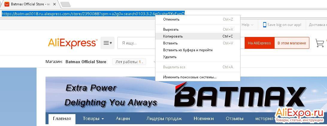 Адрес можно скопировать со странички продавца на Алиэкспресс: