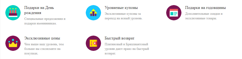 К тем преимуществам, что были ранее перечислены, действующим при предыдущем делении рейтингов, добавились еще и другие интересные для пользователей предложения. Здесь все зависит от рейтинга. Для пользователей серебряного уровня система предоставляет интересные предложения от продавцов, а также присылает поздравление на день рождение. Правда, для получения поздравления необходимо в профиле указать свою дату рождения.