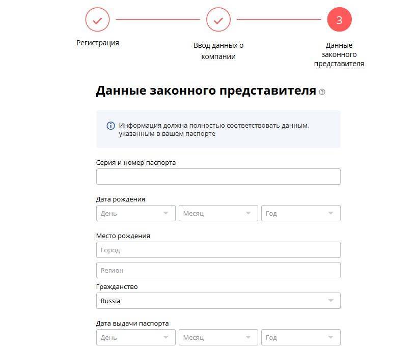 На следующем этапе вы обязаны будете заполнить данные о вашей компании, для этого потребуются следующие данные и подтверждающие документы: