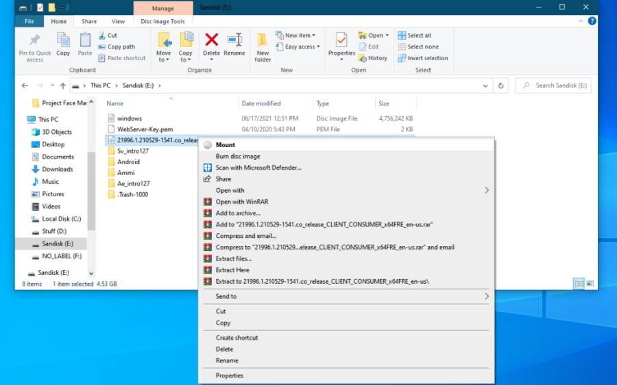 - запускаем «Проводник» и открываем ISO-образ Windows 10;