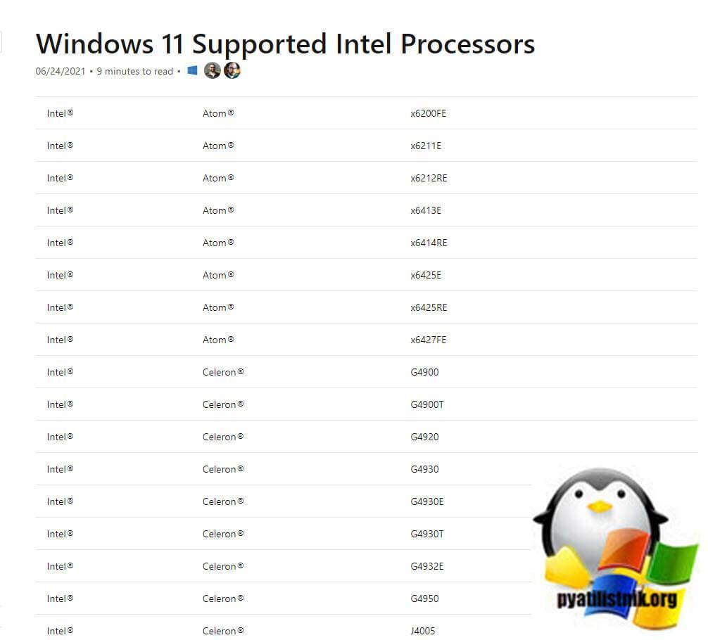 - Поддерживаемые CPU Intel – https://docs.microsoft.com/en-us/windows-hardware/design/minimum/supported/windows-11-supported-intel-processors