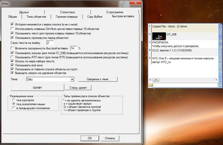 Выше был самый простой и классический случай использования программы Ditto, но она способна на большее.