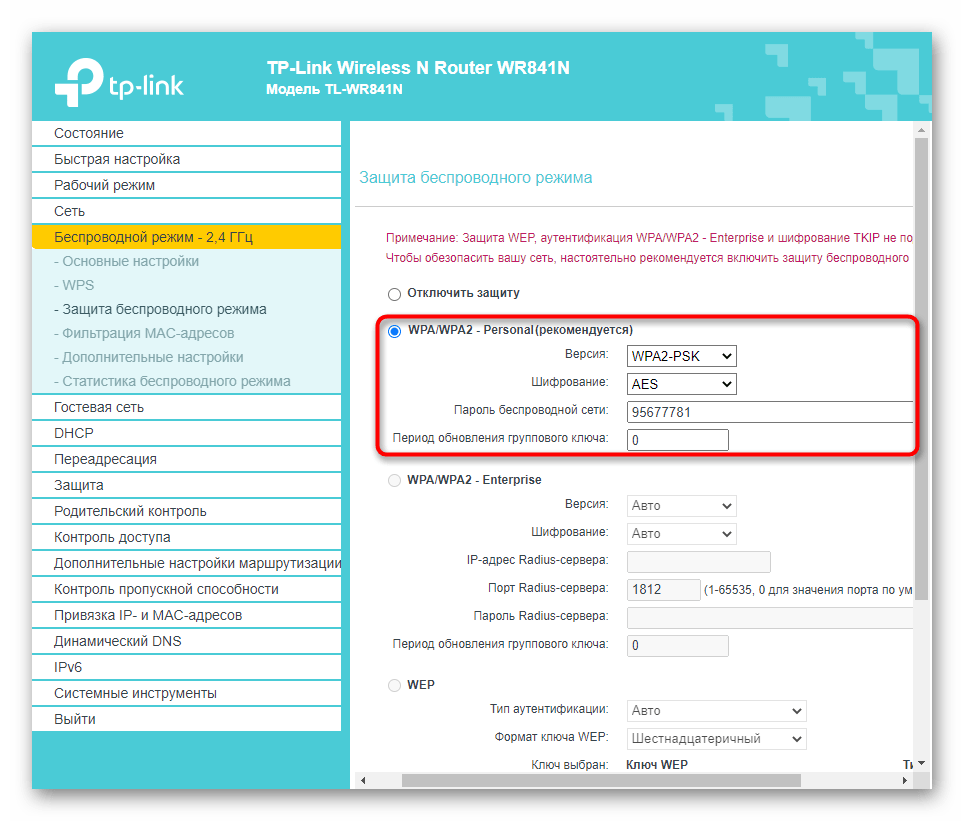 Также задаем данные для будущей беспроводной сети — SSID и пароль для подключения.
