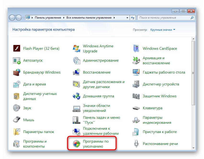 - В главном меню «Панели управления» выберите пункт «Программы по умолчанию».