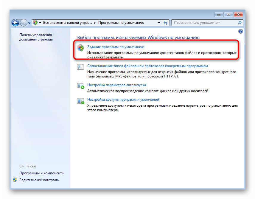 Перейдите в раздел «Задание программ по умолчанию».