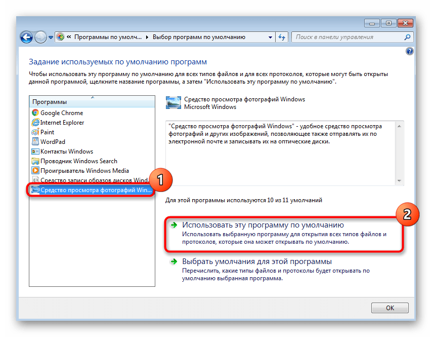 Выберите желаемое средство просмотра фотографий и назначьте его основным.