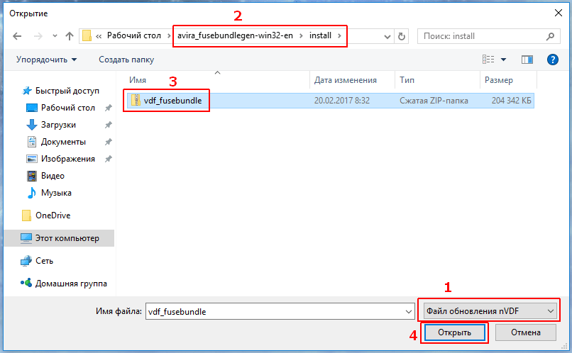- Загрузите заархивированный файл VDF, сохраненный в папке Avira Fusbundle Generator> Install.