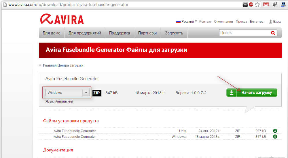 Для создания архива с помощью утилиты, скачайте и распакуйте архив avira_fusebundlegen-win32-en.zip