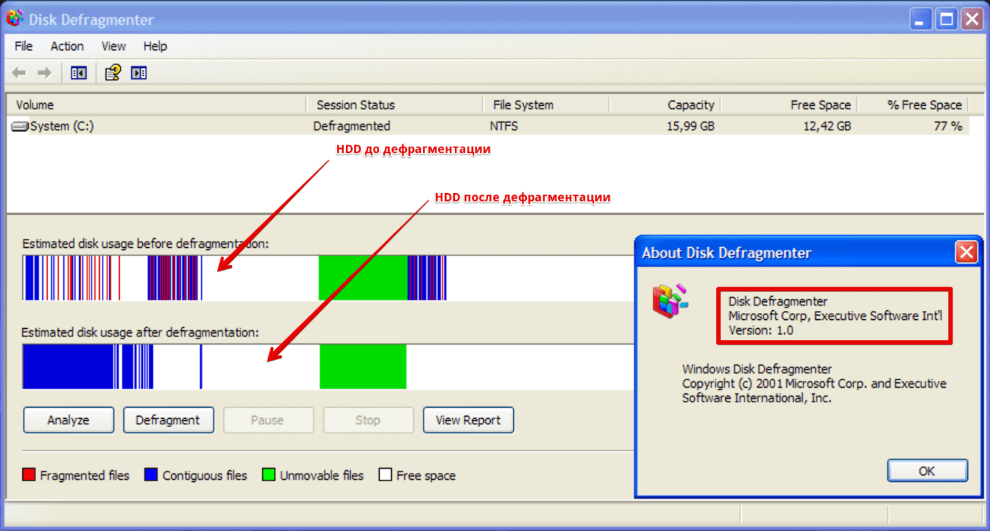 Дефрагментация в Windows XP