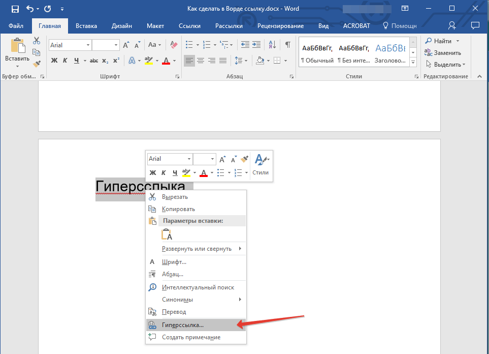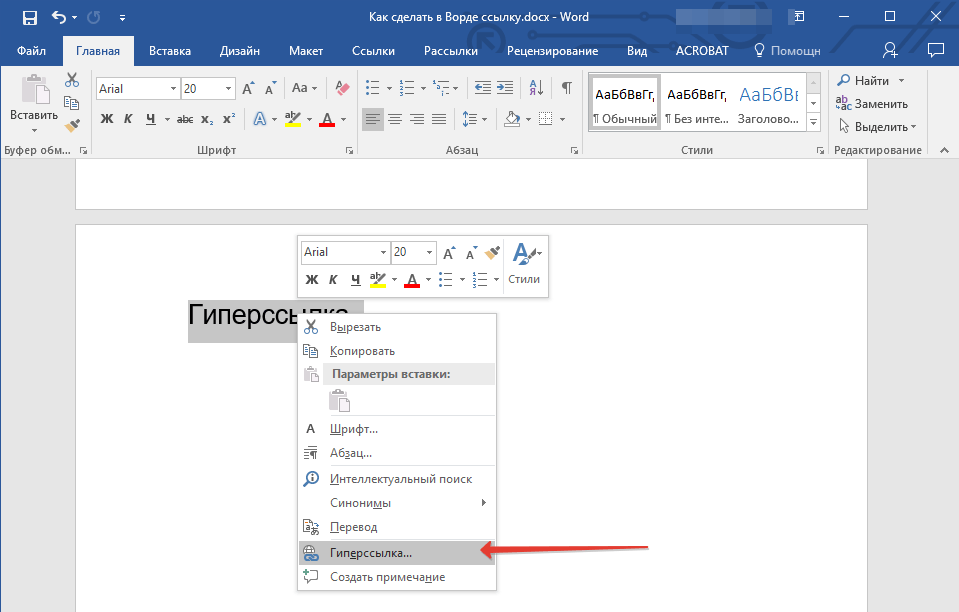 Создаем настраиваемую гиперссылку