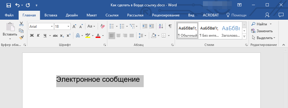 1. Выделите текст или изображение, которое должно представлять собой активную ссылку (гиперссылку).
