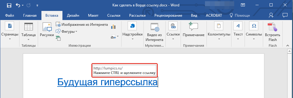 Линком может выступить любой символ, слово, графическое изображение, словосочетание или целое предложение. Главное, чтобы человеку было понятно, куда он ведет. Дальше я покажу все варианты гиперссылок, которые можно создать в Word.